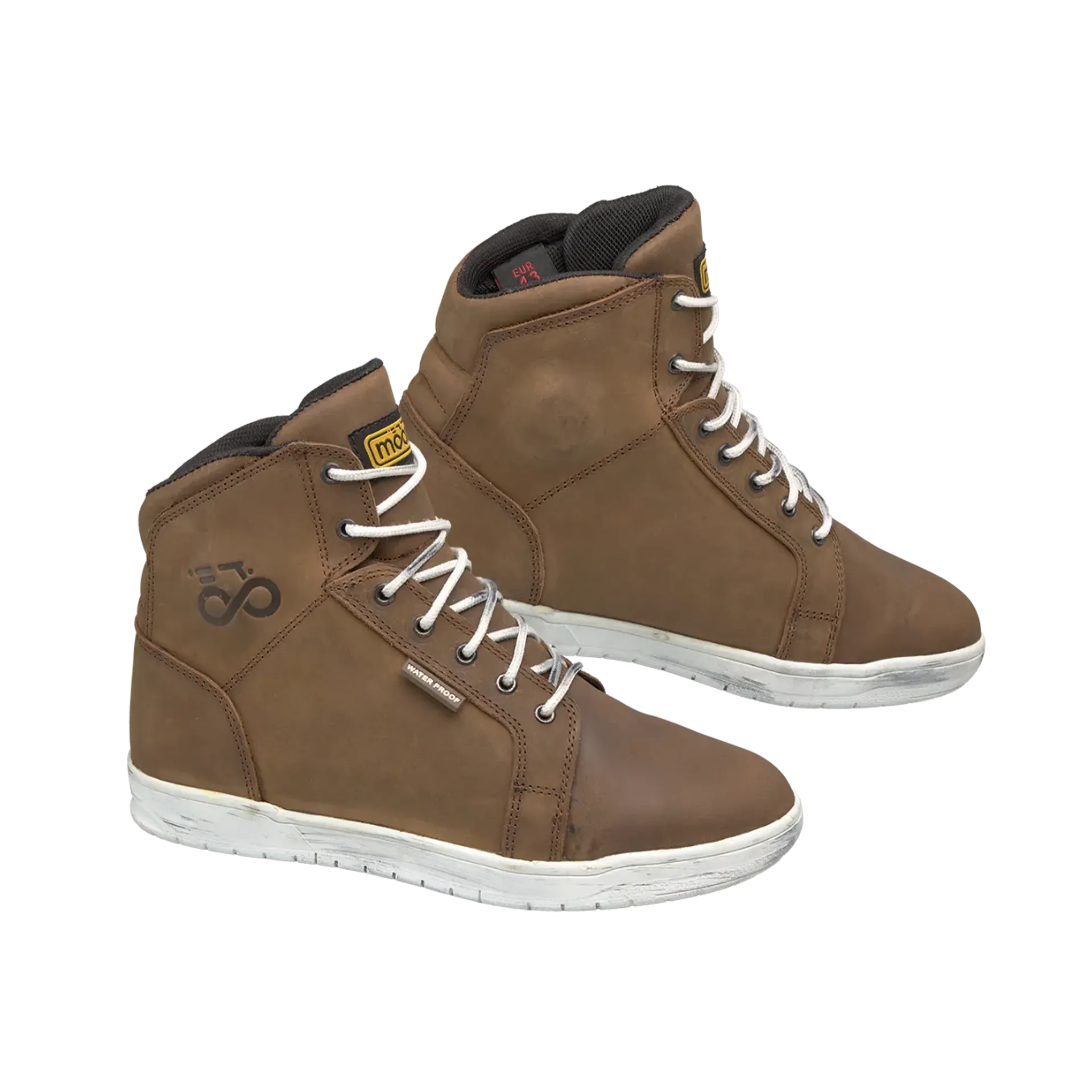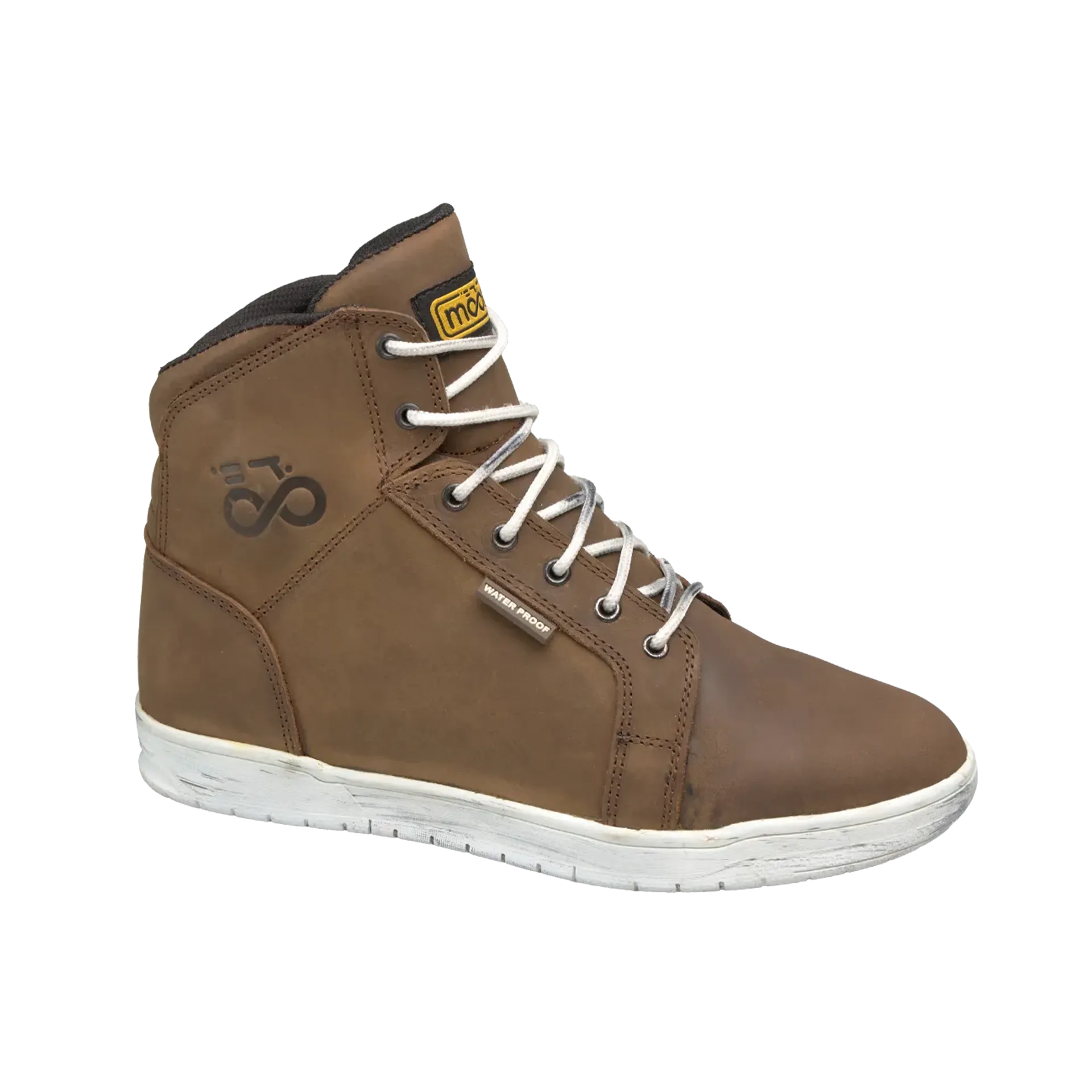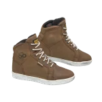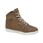 Urban-cut boot with a casual look, perfectly suited for both motorcycle gear and everyday clothing, in light brown, made from brushed nubuck leather with a vintage/worn finish.