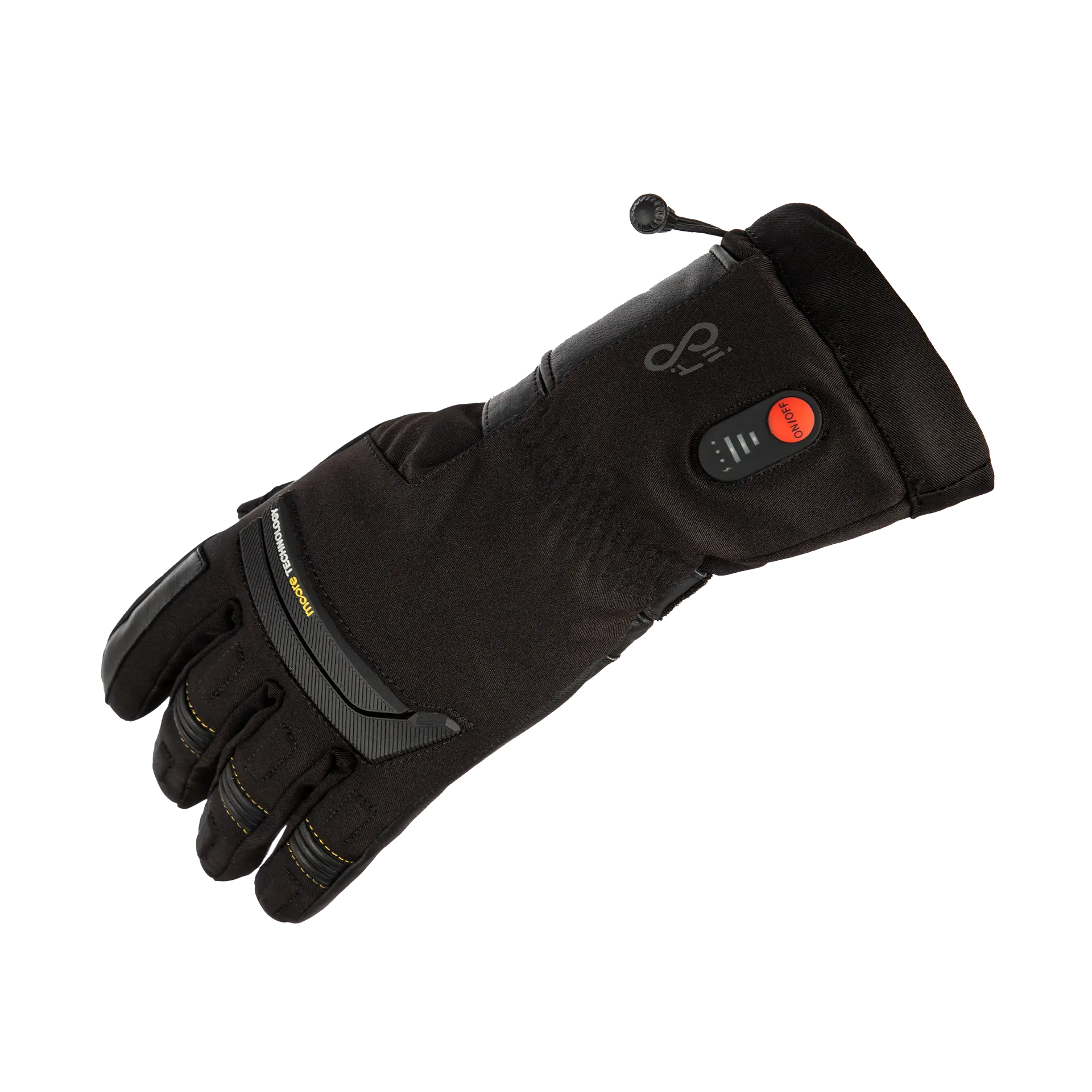 This is a long cuff glove, designed for cold to very cold temperatures, featuring Thinsulate® thermal insulation, a microfleece lining, a Hipora® waterproof membrane, and a three-level heating system.