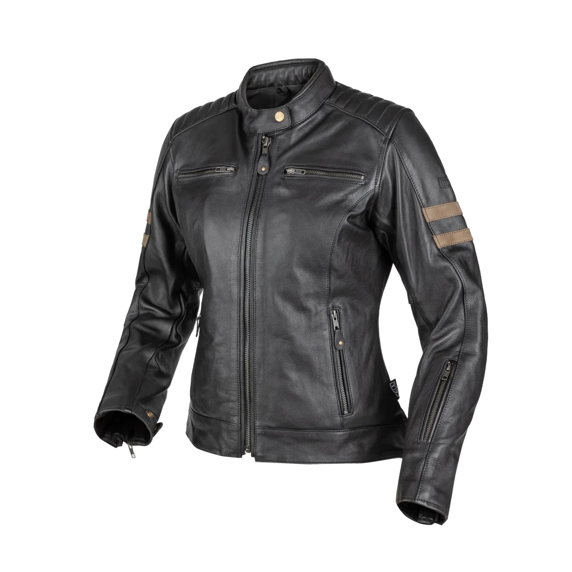 The Legend Lady jacket is made from cowhide leather, featuring a retro-style design with nubuck accents and a feminine cut, making it ideal for daily motorcycle use or casual walks. The removable thermal inner vest and hidden front vents beneath the faux zip pockets allow for year-round comfort.